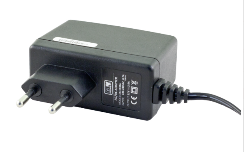 Standard batterieliminator som levererar stabiliserad 12V DC 2,5A. 1,5m kabel