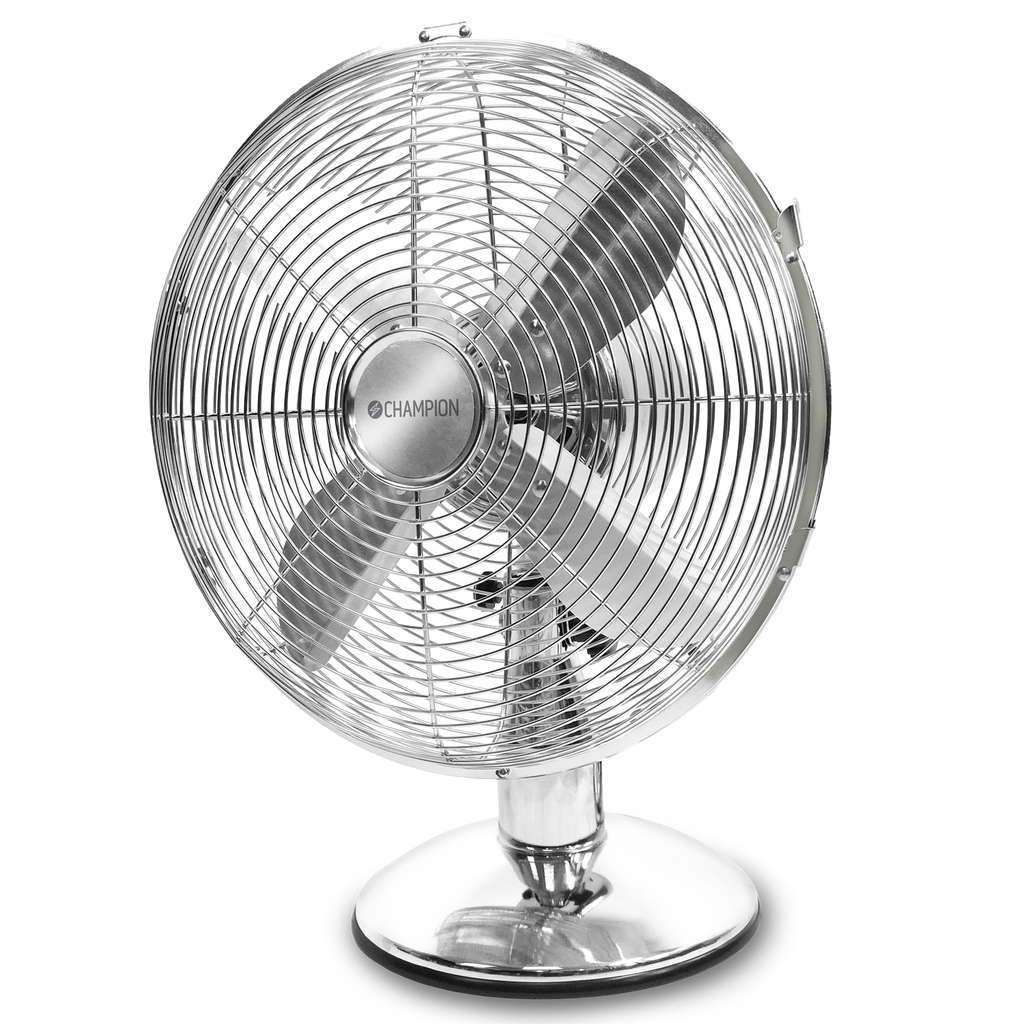 Champions borsfläkt skapar en svalkande bris under varma dagar. Placera på bordet eller byrån, fläkten står stabilt på underlaget och den oscillerande funktionen får luften att sprida sig i hela rummet. Välj mellan 3 hastigheter för att anpassa till just dina behov.