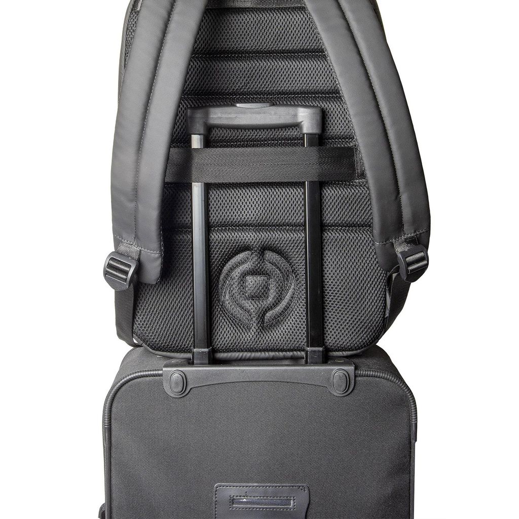 Businessback är utrustad med en bagagerem, som gör att det enkelt och säkert går att hänga ryggsäcken på ditt bagage.