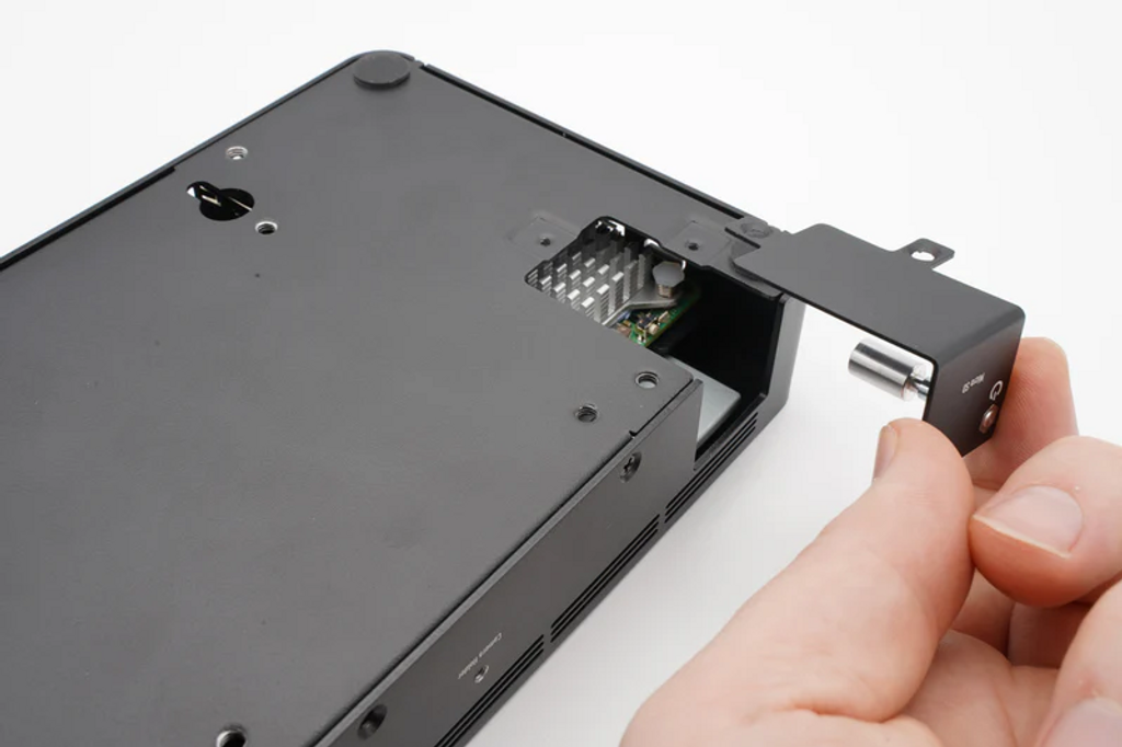 Anodiserad aluminiumram med pulverlackerad stålbas. Boetten är tillverkad med precision och har en anodiserad svart aluminiumram, vilket säkerställer robusthet och ett modernt utseende. Lasergraverade märkta utskärningar ger enkel åtkomst till kontakter, medan den svarta pulverlackerade stålbasen erbjuder en stabil plattform för din Raspberry Pi-konfiguration. Detta eleganta metallfodral är noggrant utformat och förenar sömlöst funktionalitet med en elegant, minimalistisk design, och vänder sig till Raspberry Pi-entusiaster och proffs som söker både mångsidighet och hållbarhet.