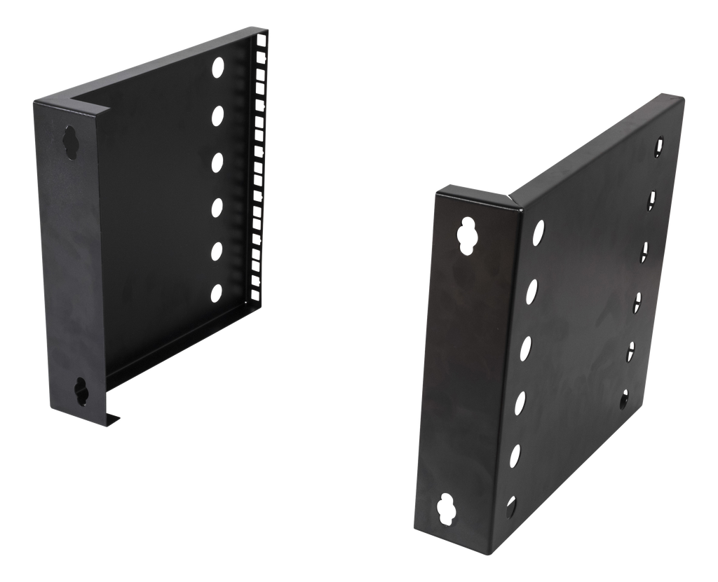 Väggstativ med justerbar bredd för rackmonterade enheter. Stativet består av två fristående konsoler av stål vilket gör att du själv väljer om det är 10"- eller 19"-enheter som ska monteras.