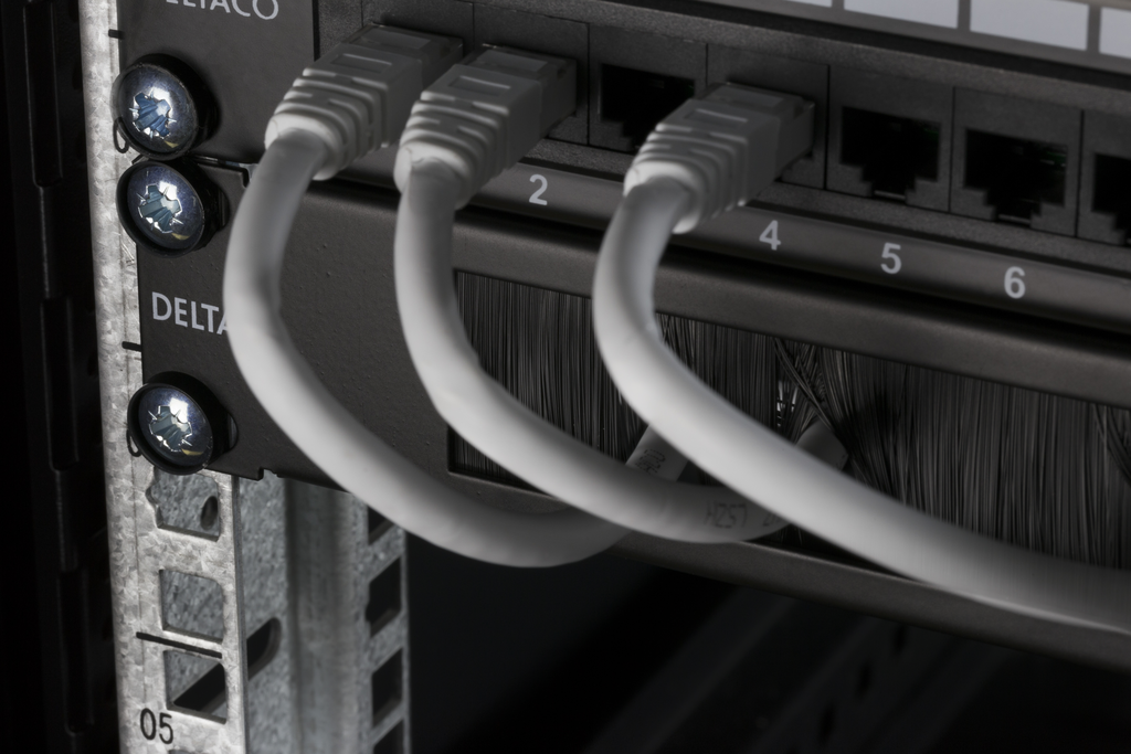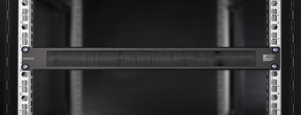 DELTACO 19" kabelgenomföring med borste, metal/nylon 1U, svart