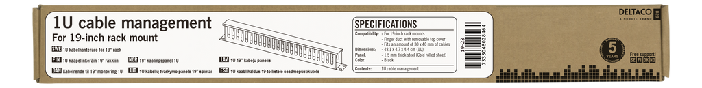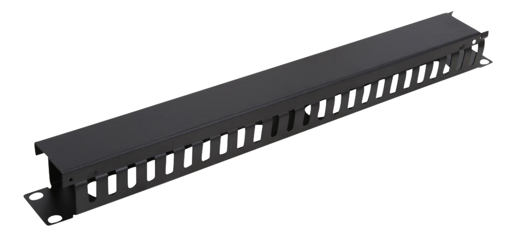 DELTACO 19" kabelhanterare, metall, fingerkanal och genomföring, 1U, svart