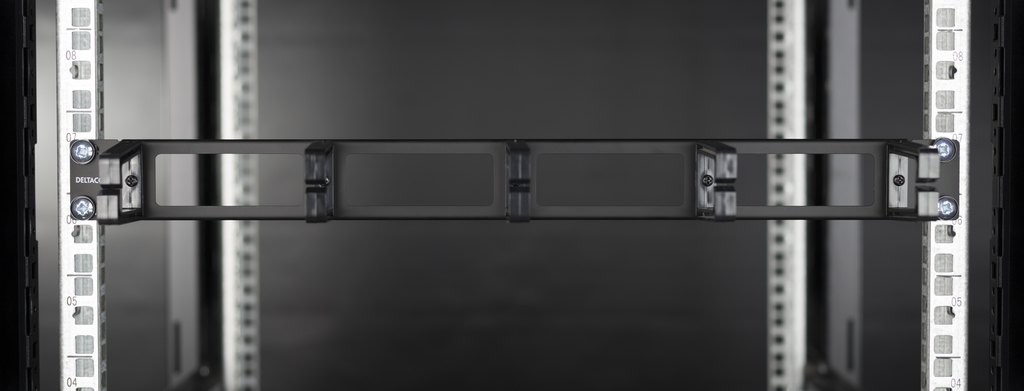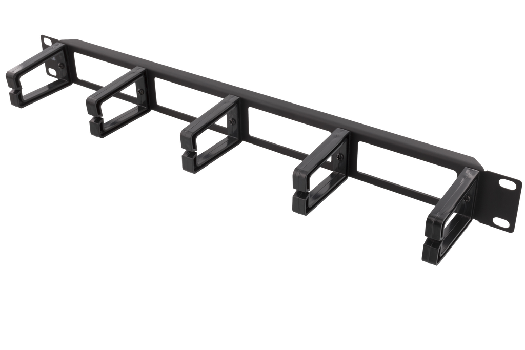 DELTACO 19" Kabelpanel, 1U, 5 fästen, kabelhantering, svart
