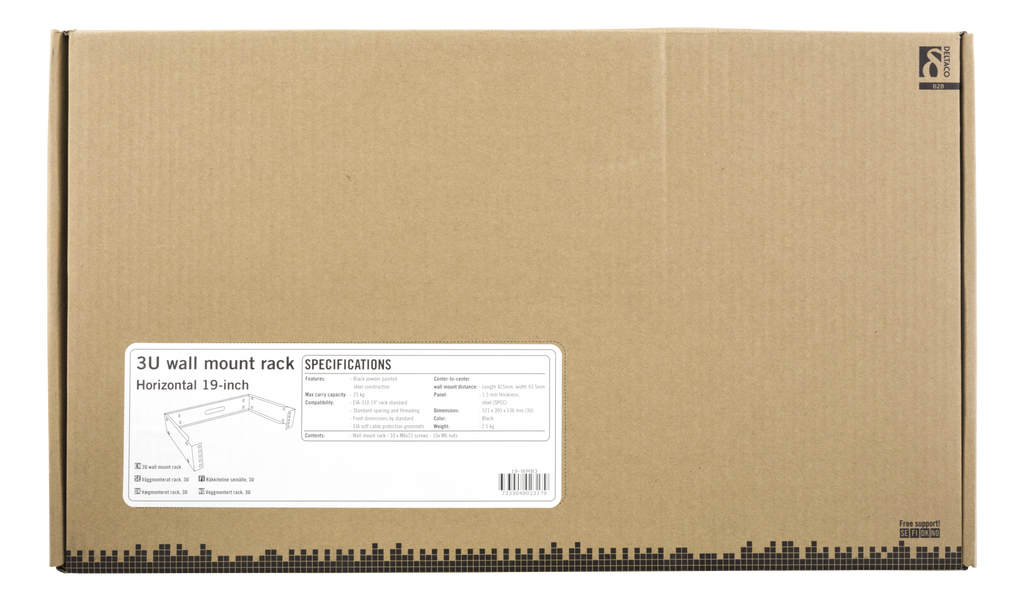DELTACO 19" väggfäste, 3U, max 25kg, stålkonstruktion, svart