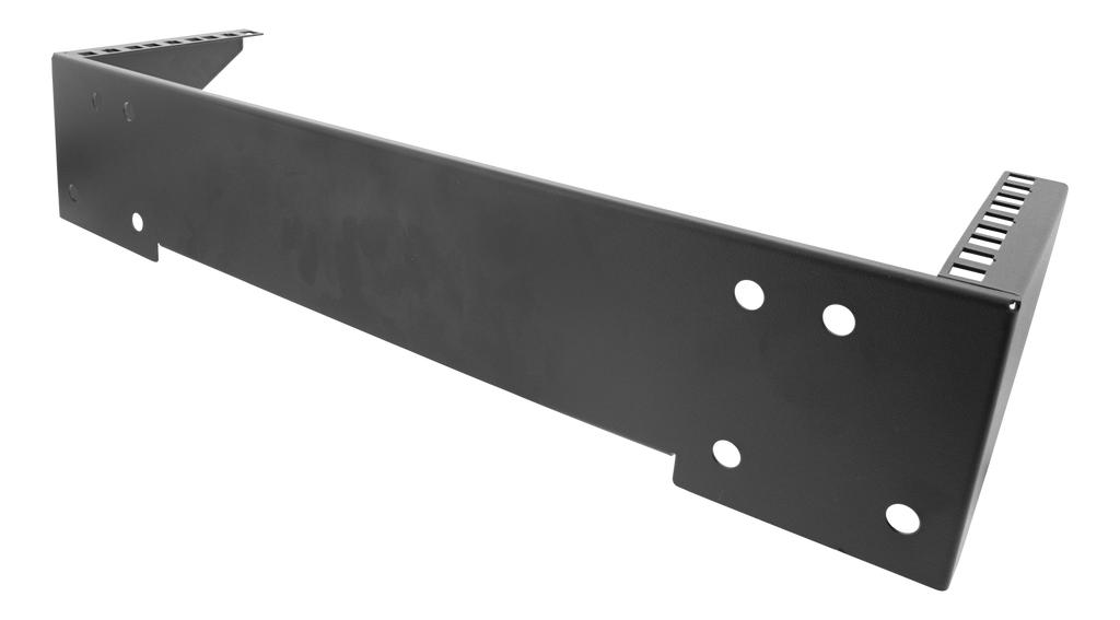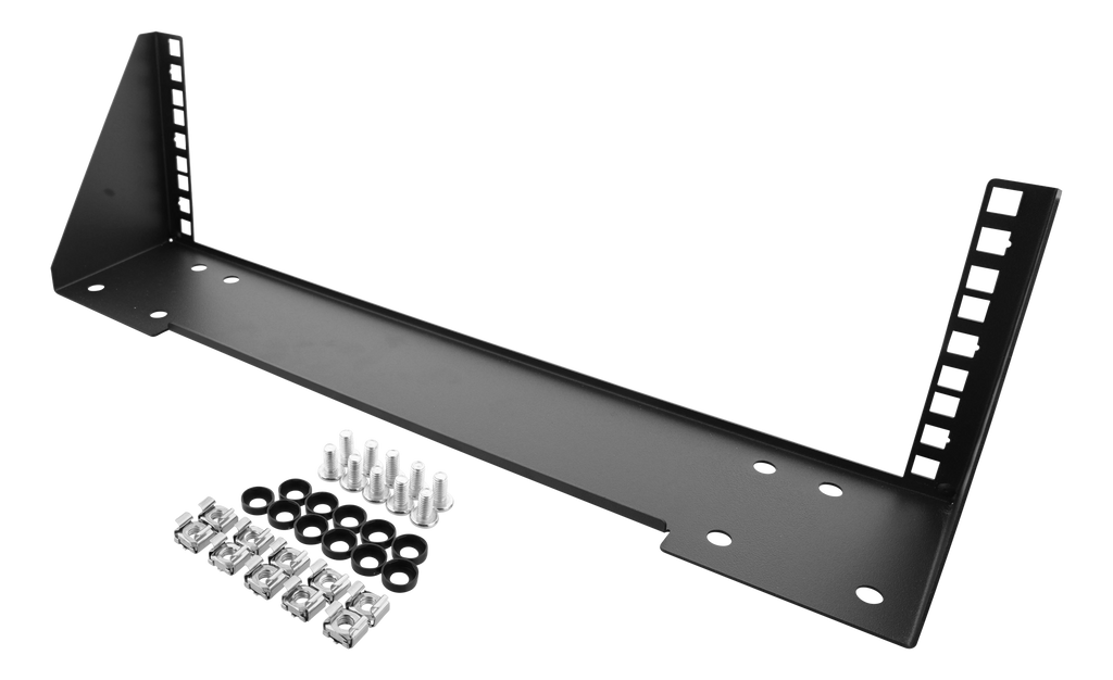 Vertikalt väggfäste med en höjd av 3U för att kunna installera switchar, patchpaneler eller andra 19"-enheter på väggen. Går även bra att använda under ett bord som illustreras i bilderna.