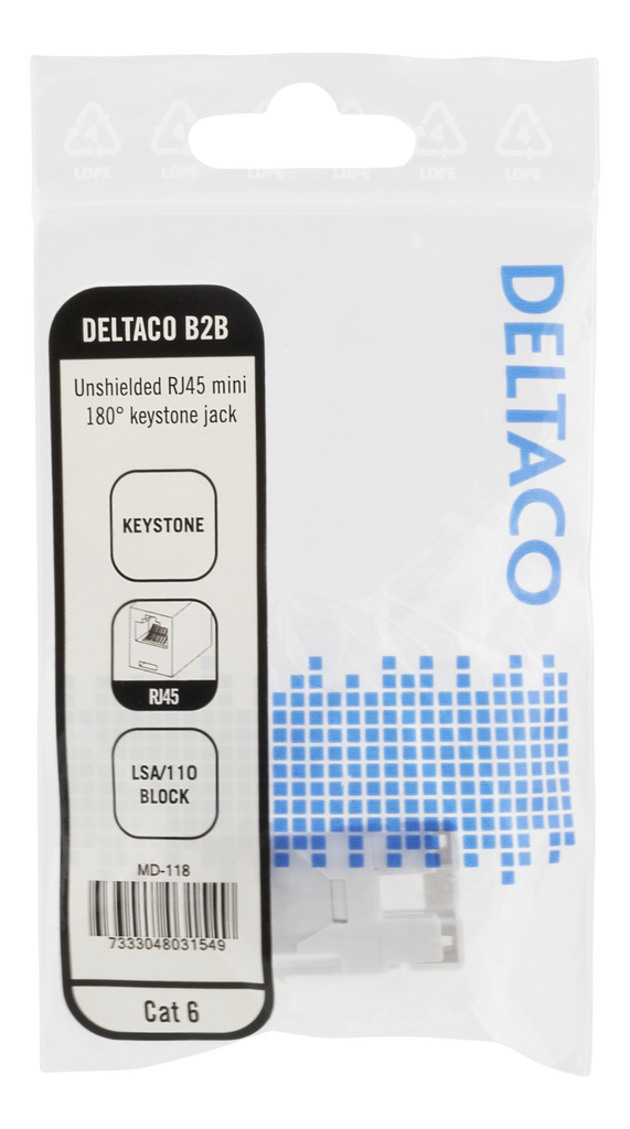 DELTACO Cat6 Keystone-uttag, LSA/110-terminering, plast, 180, vit