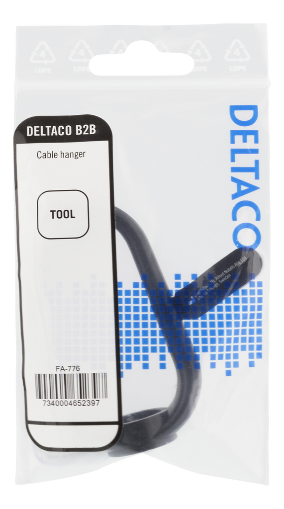 DELTACO Kabelhängare i plast, skruvmontering, ett skruvhål, svart