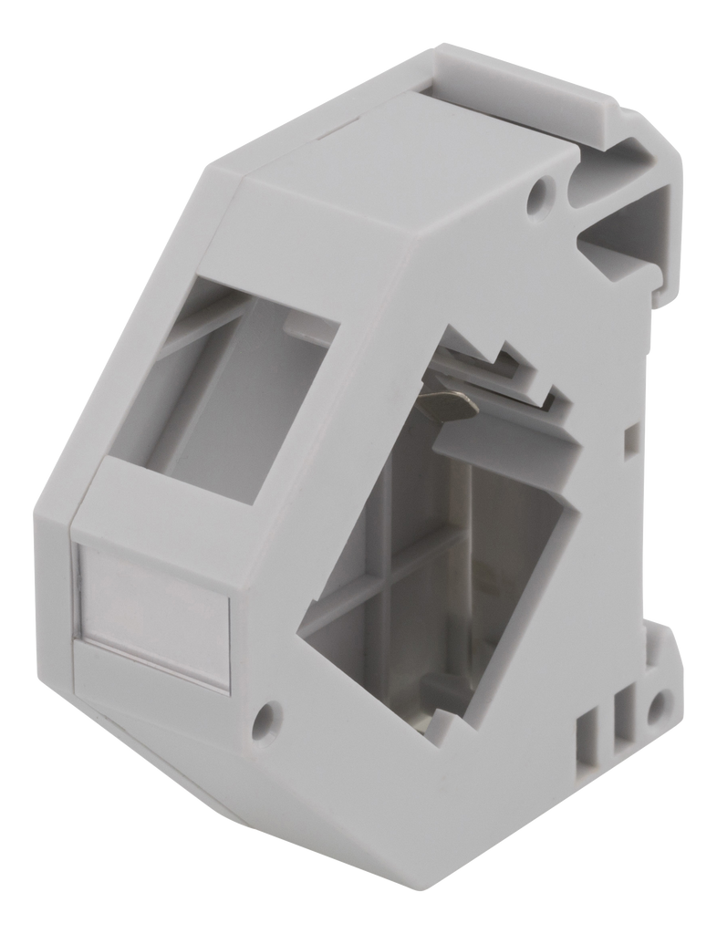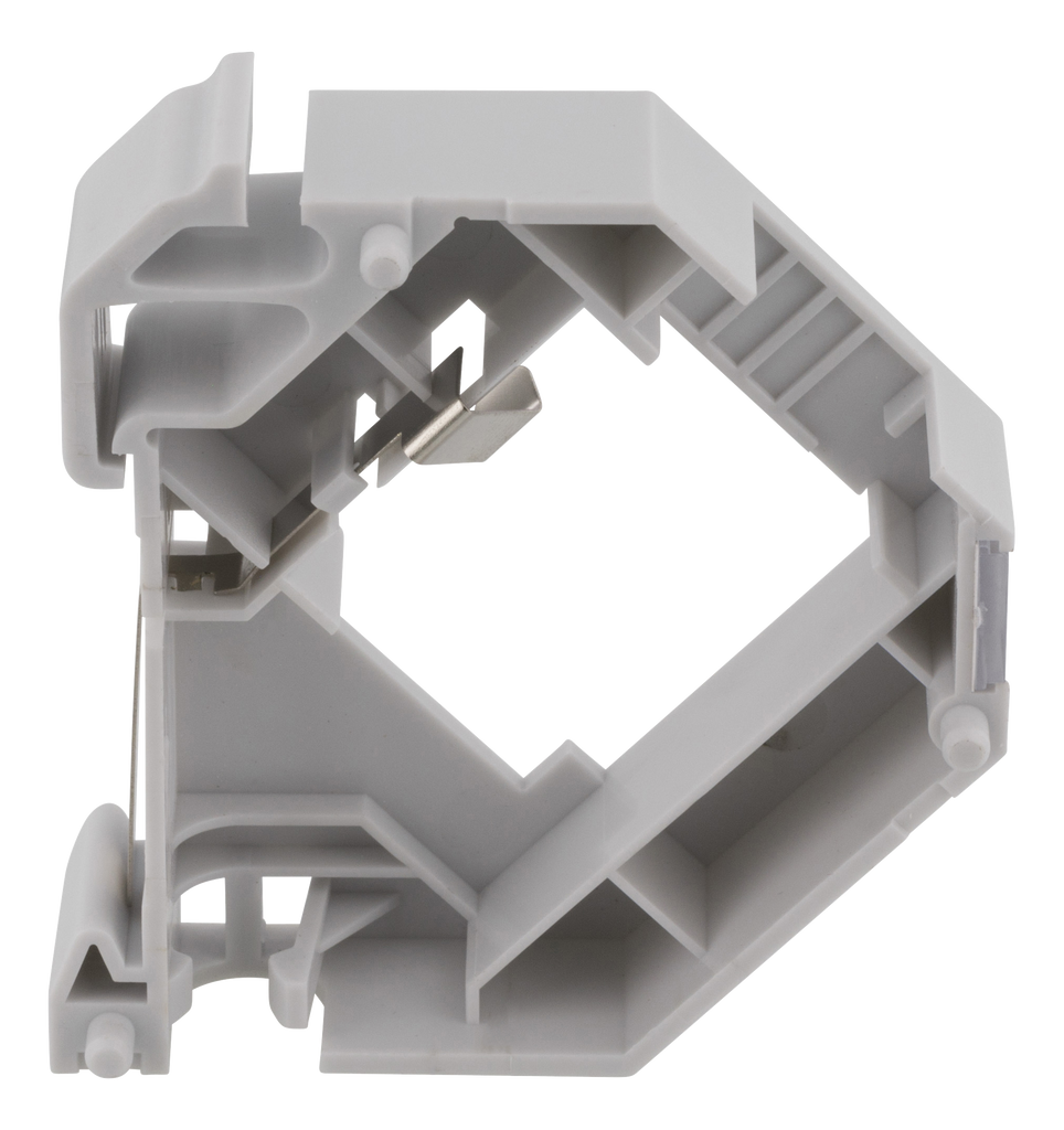 En Keystone-hållare som sätts på en 35mm DIN-skena för såväl skärmade som oskärmade uttag.