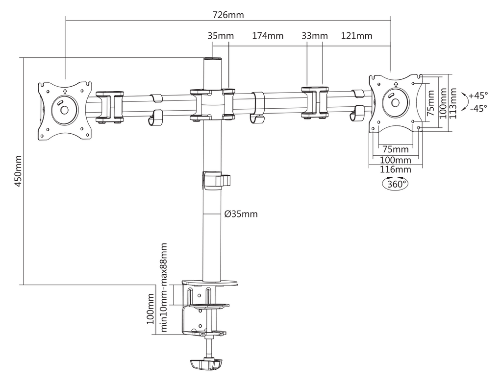Med ARM-0300 får du en större skrivbordsyta, och en ergonomisk arbetsposition. Kompatibel med LCD-skärmar mellan 13"-27" upp till 8 kg (per skärm). Full-artikulation ger maximal flexibilitet - tilta och sväng din monitor upp till 90° åt både höger och vänster för justerbart tittande. Dess kulledsstruktur möjliggör smidig, ansträngningslös rotation och positionering i alla riktningar, Så du slipper reflektioner och kan hitta den bästa betrakningsvinkeln, du kan också justera monitorn vertikalt till önskad position. Förutom det så är väggfästet utrustat med kabelklämmor för organiserade kablar. Väggfästet är VESA kompatibelt med måtten 75x75, 100x100.