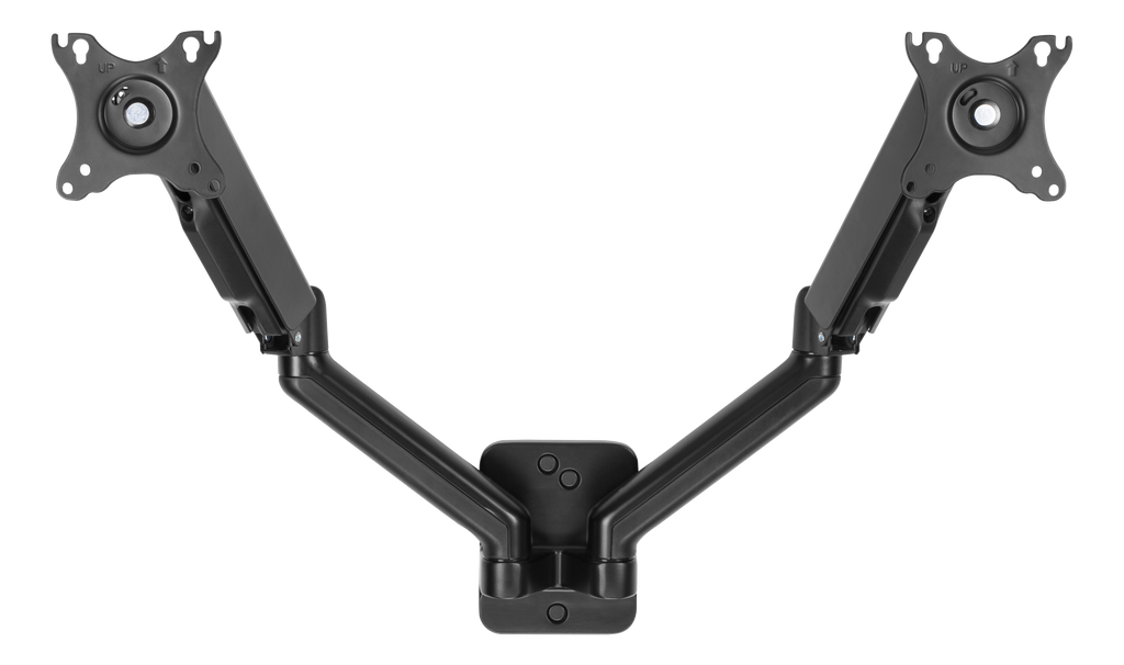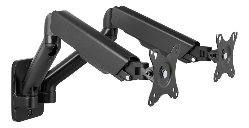 DELTACO OFFICE Väggfäste med gasfjäder för dubbla skärmar, tilta, sväng, rotera, 17-32", VESA, svart