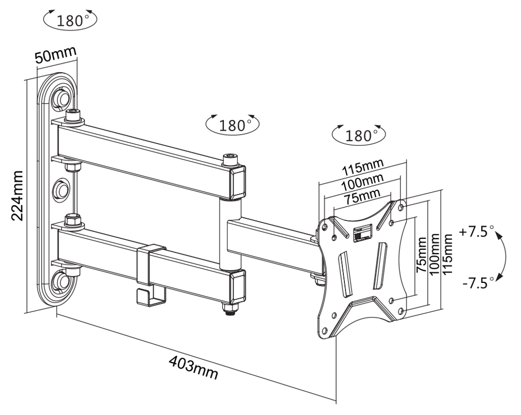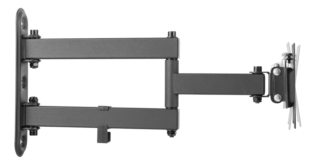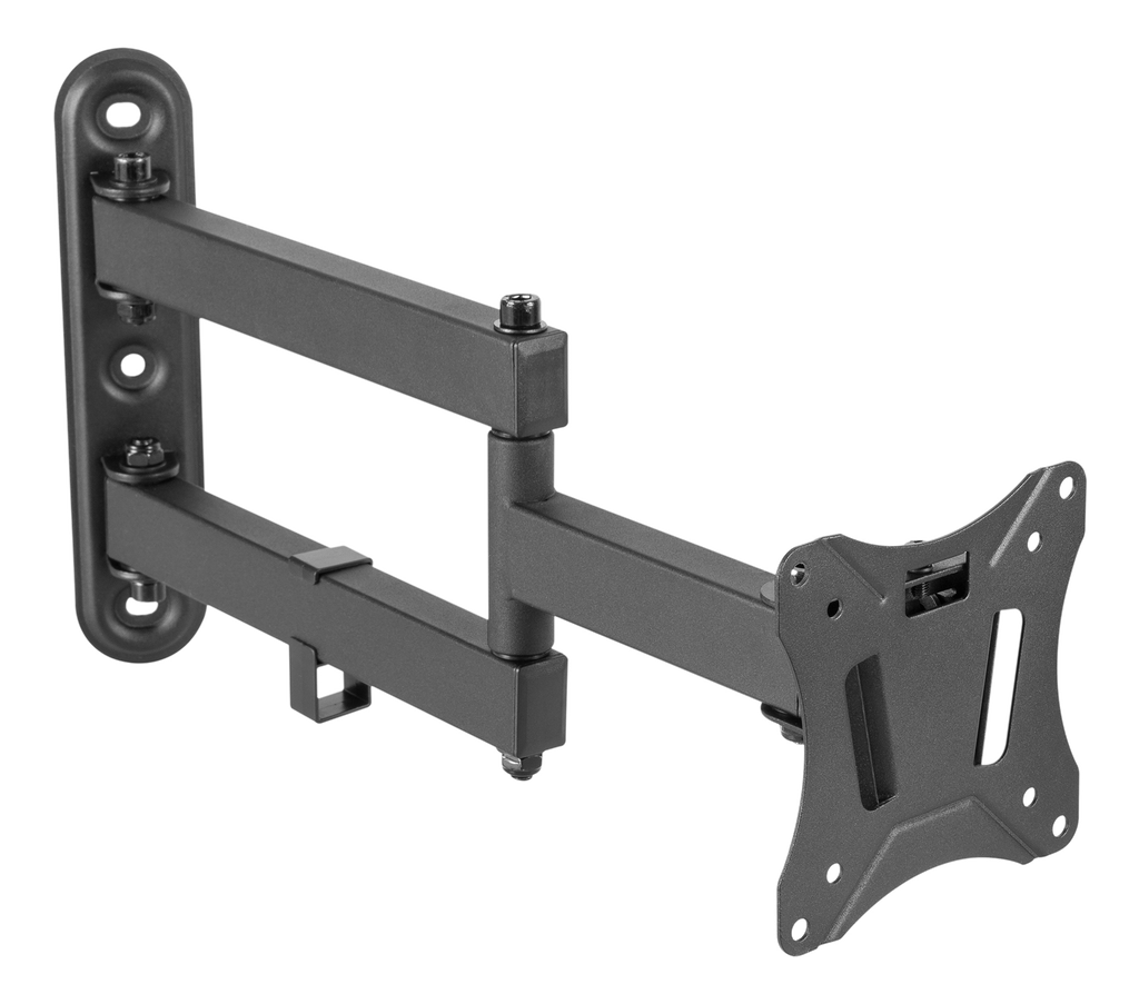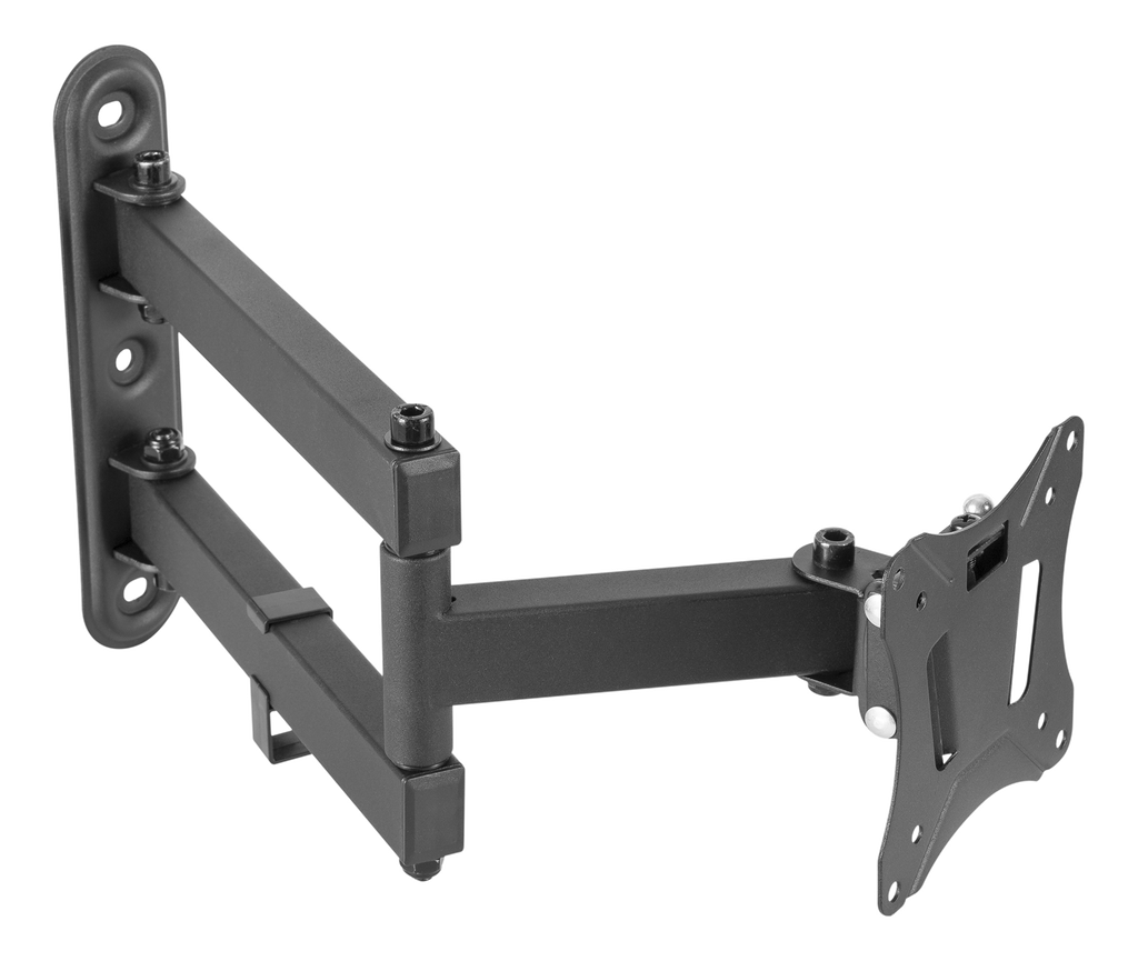 ARM-0251 är en idealisk lösning för de flesta 13"-27" platt-TV-apparater upp till 25 kg. Enkel konstruktion möjliggör enkel installation. Justerbar vridarm och lutande VESA-platta ger flexibilitet. Kabelklämmorna inkluderade håller kablarna organiserade. VESA kompatibel med 75x75, 100x100.