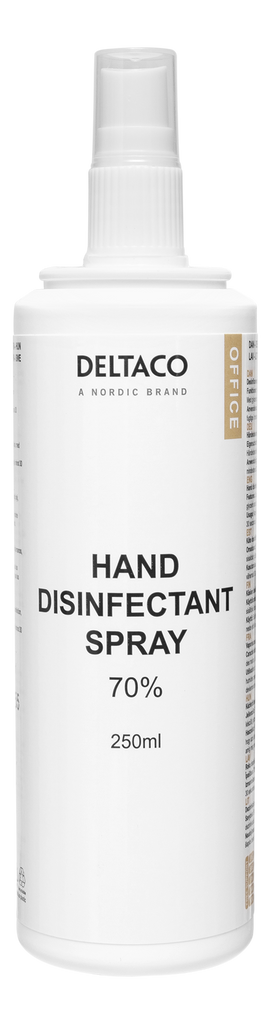 DELTACO OFFICE Handdesinfektionsspray 250ml, 70% alkohol, innehåller glycerin och Aloe vera, vit