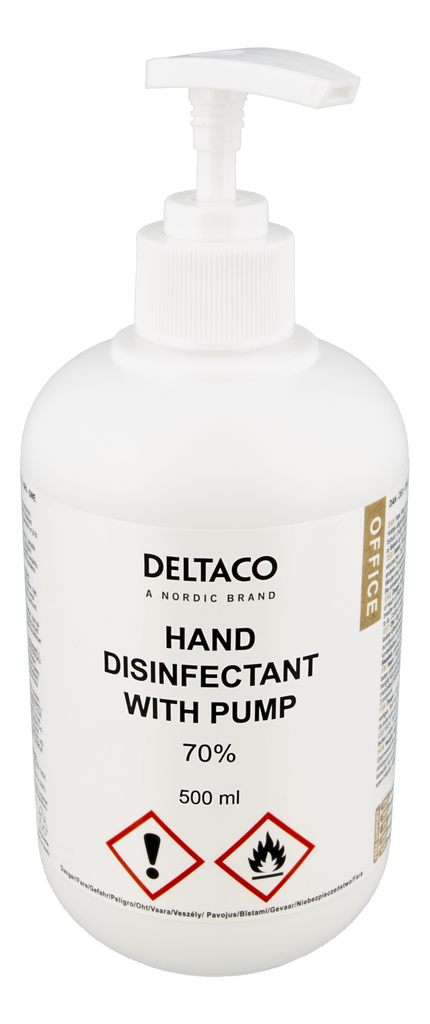 DELTACO OFFICE Handdesinfektionsmedel med pump, Aloe Vera, 70%, 500 ml, vit