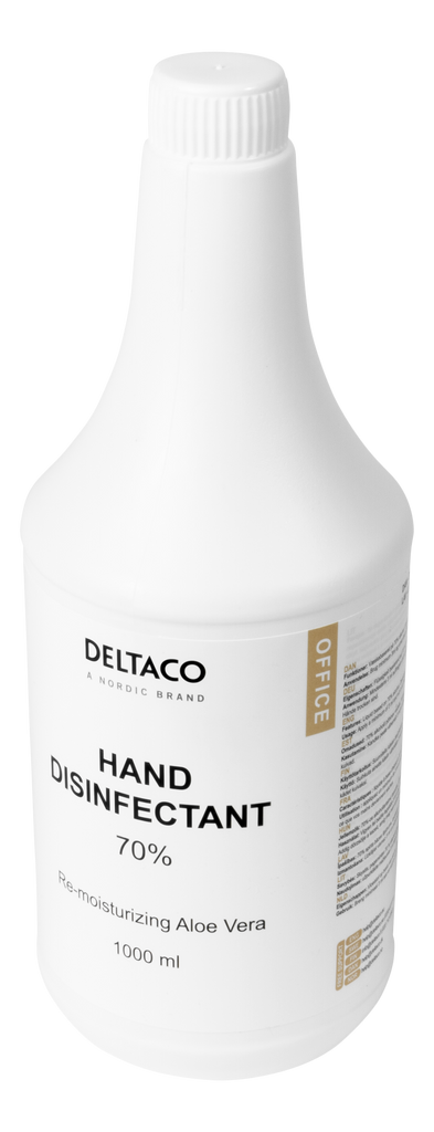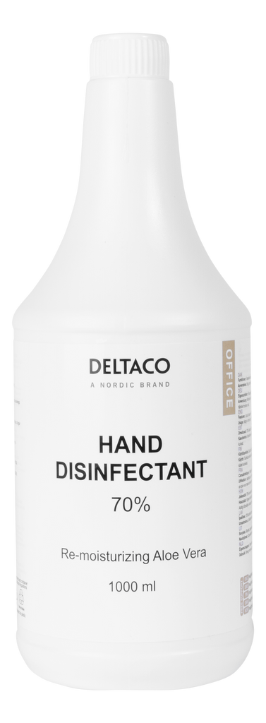 DELTACO OFFICE Handdesinfektionsmedel med Aloe Vera, 70%, 1000 ml, vit