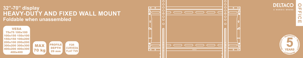 DELTACO OFFICE Fixerat väggfäste, vikbart, 32"-70", 70 kg, svart
