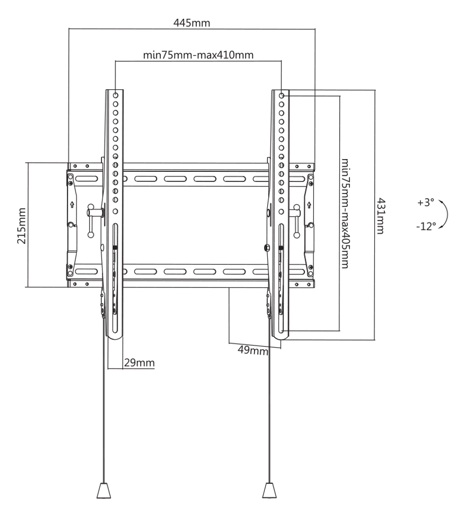 • Verktygsfri tilt mekanism: +3°~-12° för ansträngningslös justering