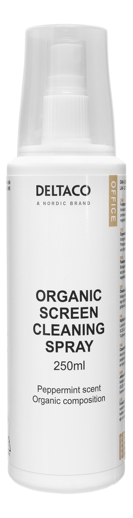 DELTACO OFFICE Organisk rengöringsvätska för skärmar, 250 ml, alkoholfri och biologiskt nedbrytbar, pepparmynt doft