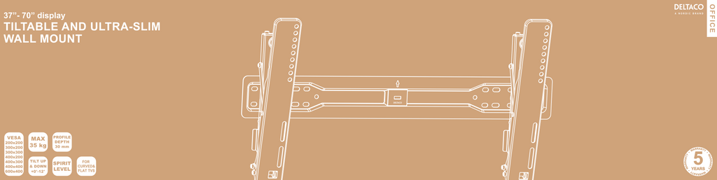 DELTACO OFFICE Tiltbart väggfäste, Ultra-Slim, 37"-70", 35 kg, svart