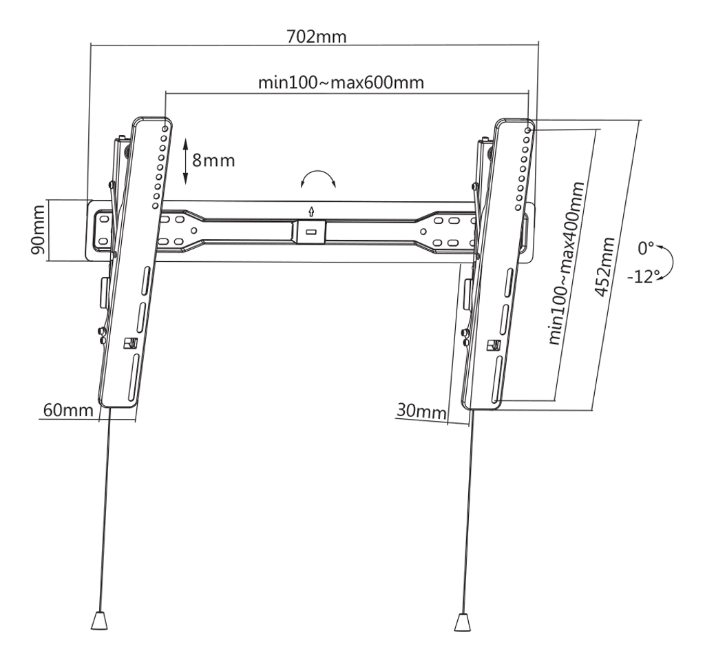 • Verktygsfri tilt-mekanism: 0° ~ -12°, möjliggör ansträngningslös positionering