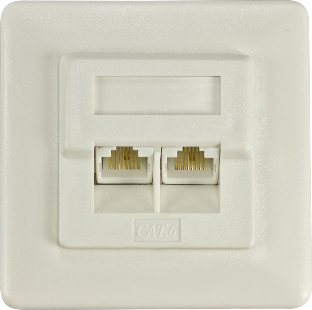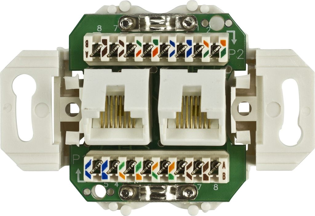 DELTACO oskärmat vägguttag för montering i apparatdosa, 2xRJ45, Krone-plint, UTP, Cat6, vit