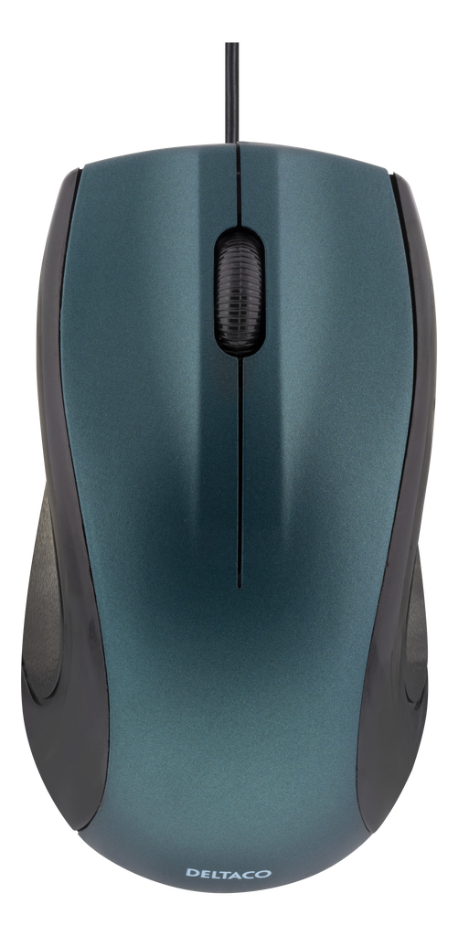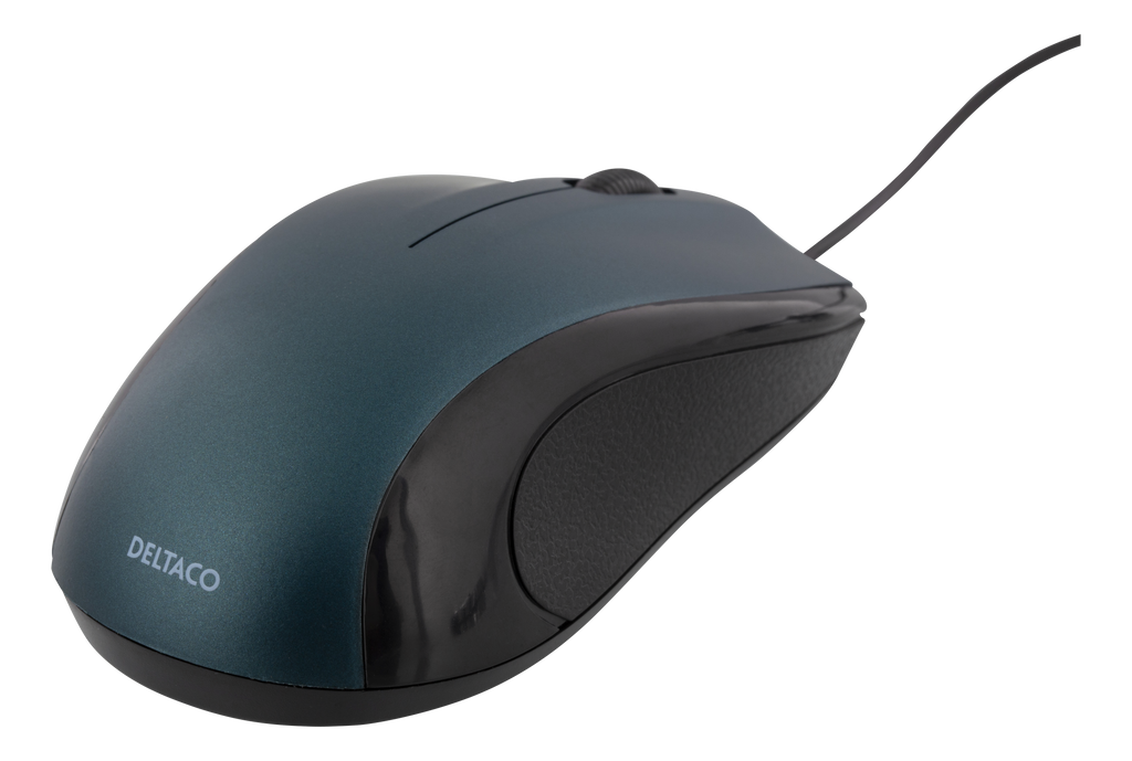 DELTACO optisk mus, 1200 DPI, 125 Hz, 3 knappar med scroll, USB, 1,2m kabel, blå