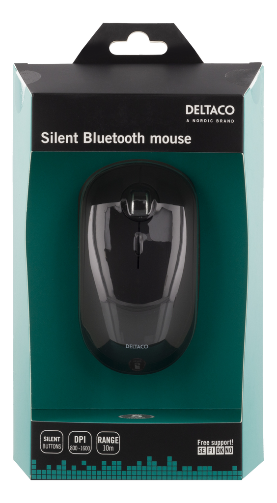 DELTACO Tyst trådlös mus, Bluetooth, 1x AA, 800-1600 DPI, 125 Hz, svart