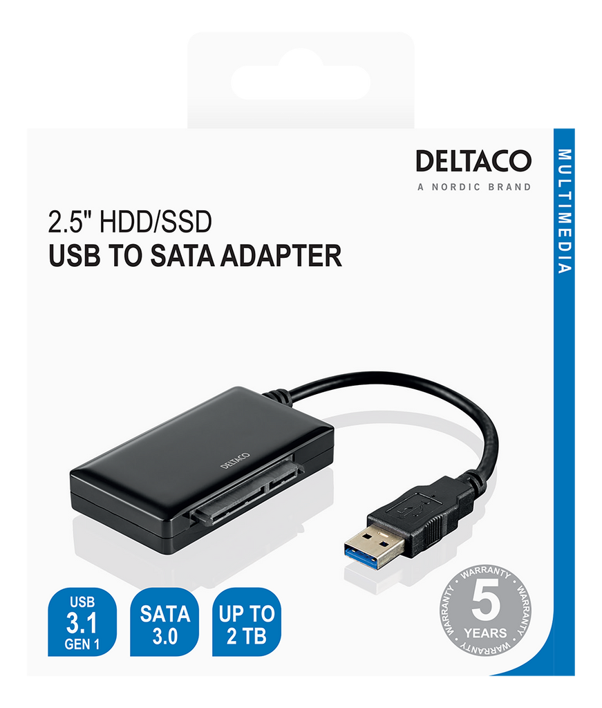 DELTACO USB 3.0 till SATA 6Gb/s adapter, för 2,5" hårddiskar, svart