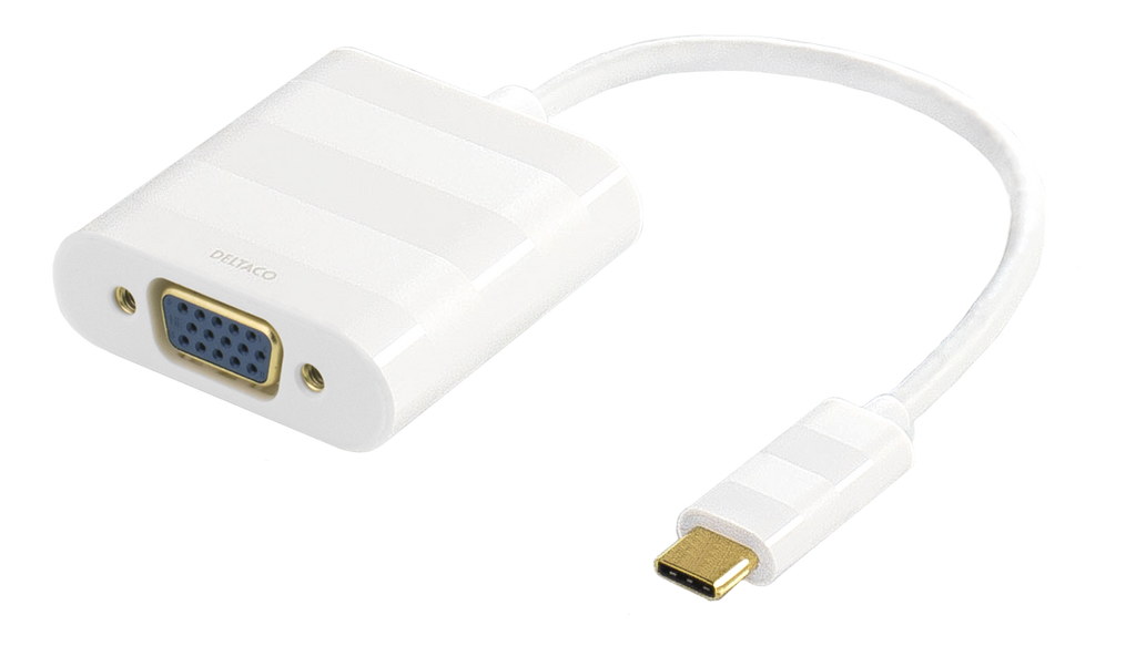 DELTACO USB 3.1 till VGA adapter, USB typ C hane - VGA hona, 1080P, vit