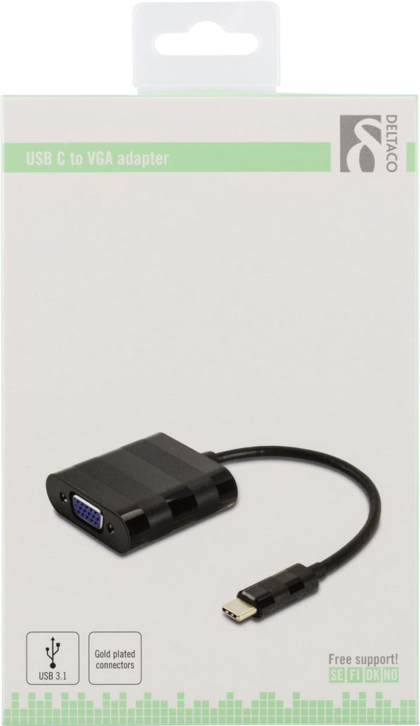 DELTACO USB 3.1 till VGA adapter, USB typ C Ha - VGA Ho, 1080P, Guldpläterade kontakter, svart