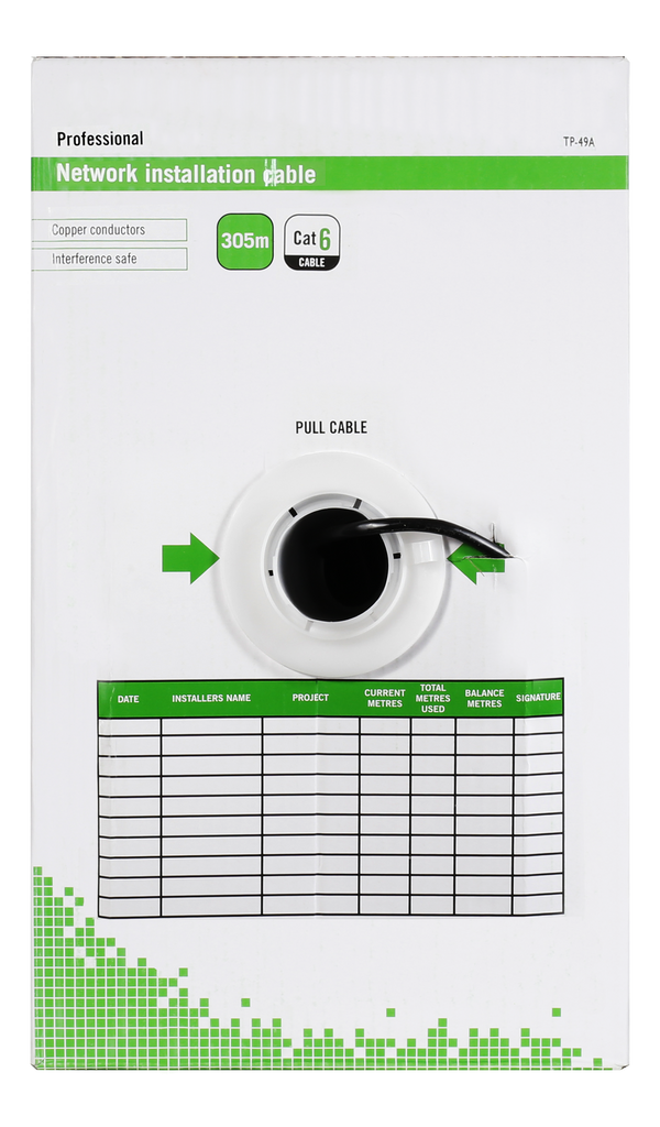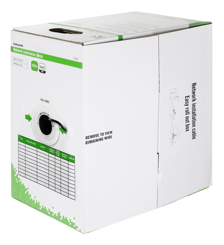 DELTACO U/UTP Cat6 installationskabel, för utomhusbruk, 305m box, 250MHz, Delta-certifierad, svart