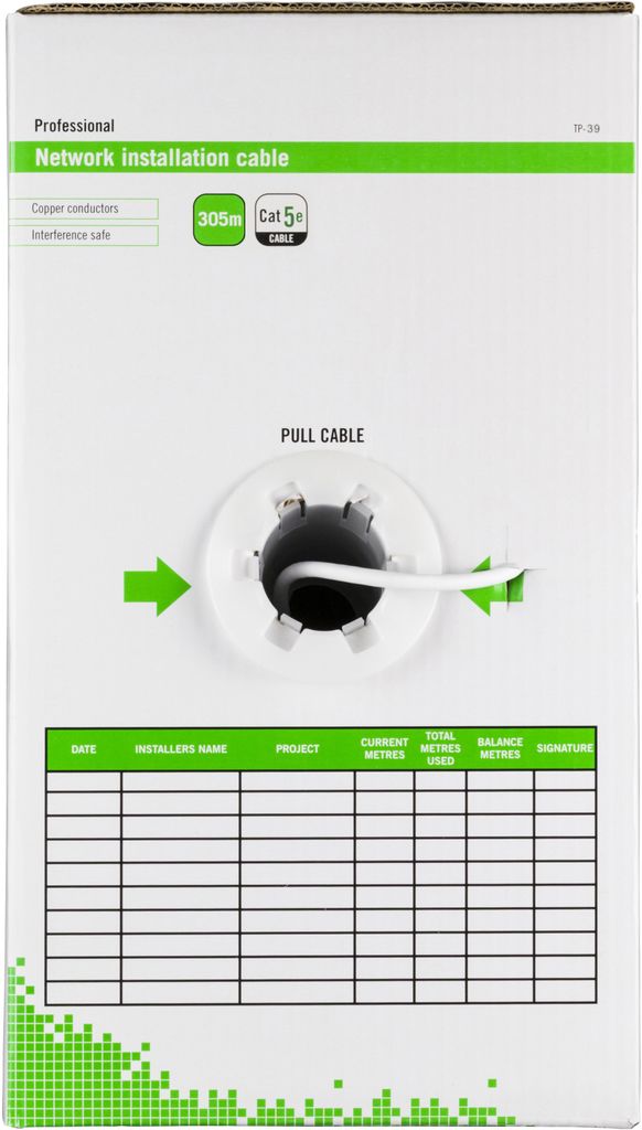 Deltaco DELTACO U/UTP installationskabel, Cat5e, 305m, vit 1 899:- TP-39 Deltaco Produktbeskrivning DELTACO U/UTP Cat5e installationskabel, 305m box, 100MHz, Delta-certifierad, vit Relaterade kategorier Installation Network Installation Ethernet cables