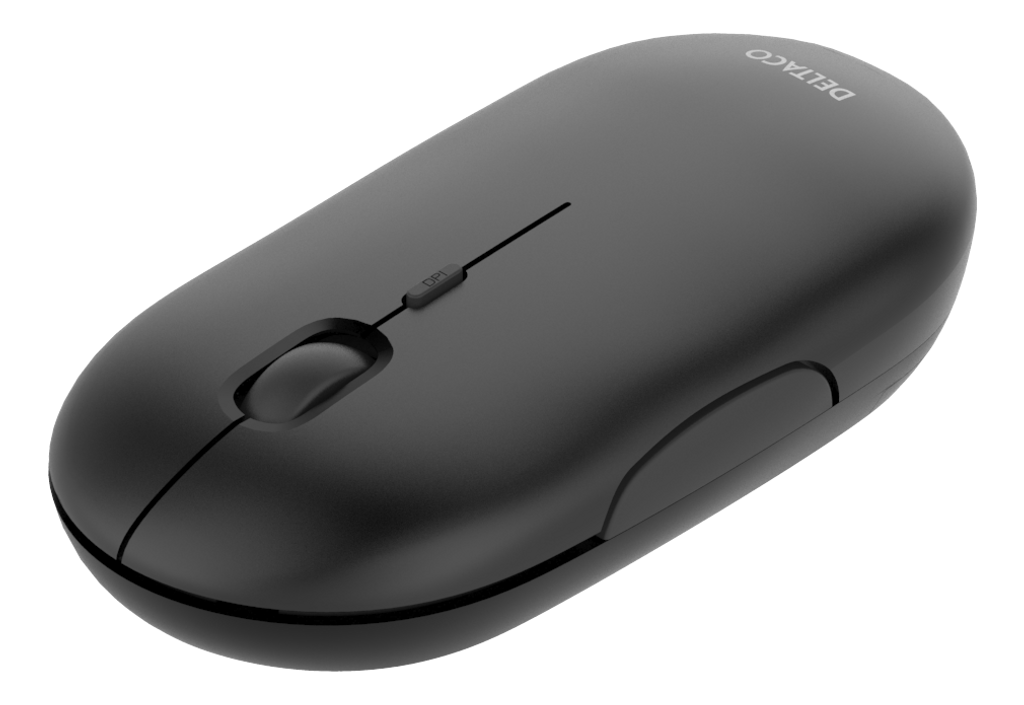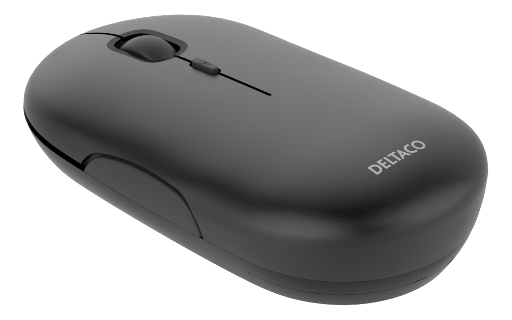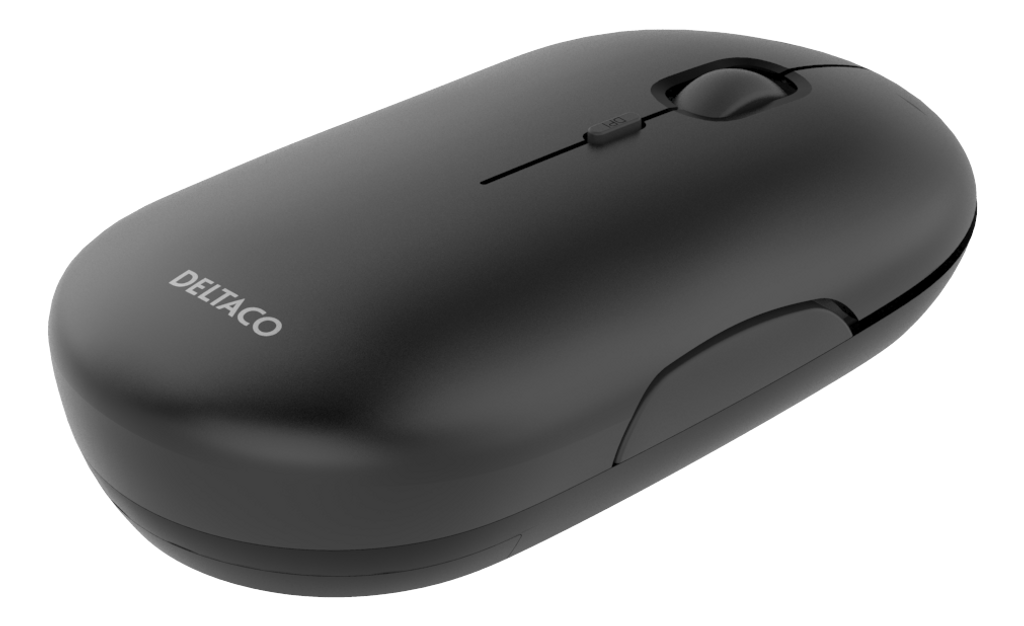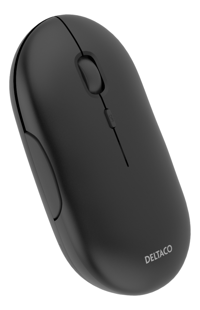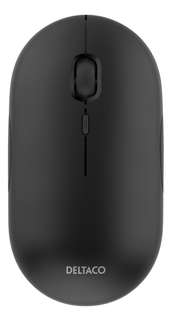 DELTACO trådlös platt tyst mus, 1600 DPI, USB-mottagare, 4 knappar, mörkgrå