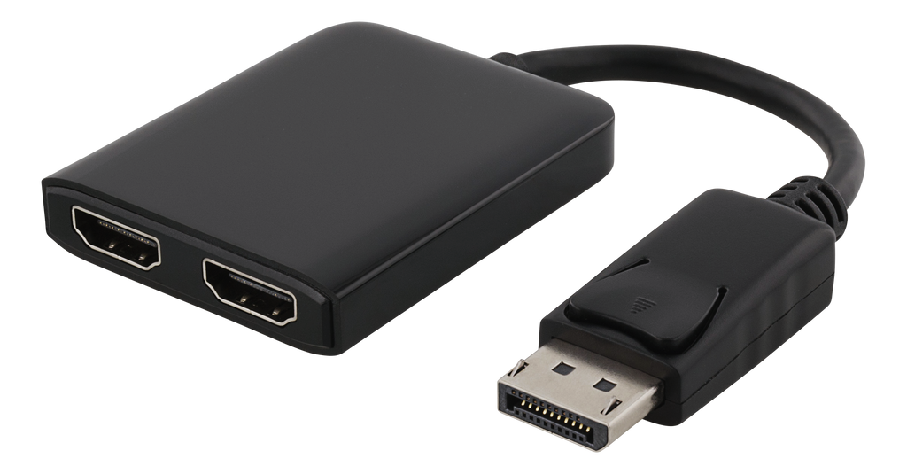 DELTACO DisplayPort - 2xHDMI MST-hubb, 3840x2160 i 30Hz, svart