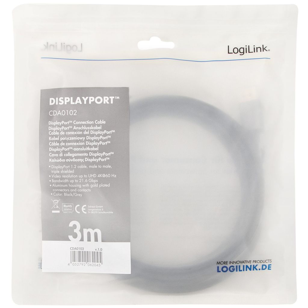 LogiLink DisplayPort-kabel Hane-Hane, 4K/60 Hz, aluminium, 3 m