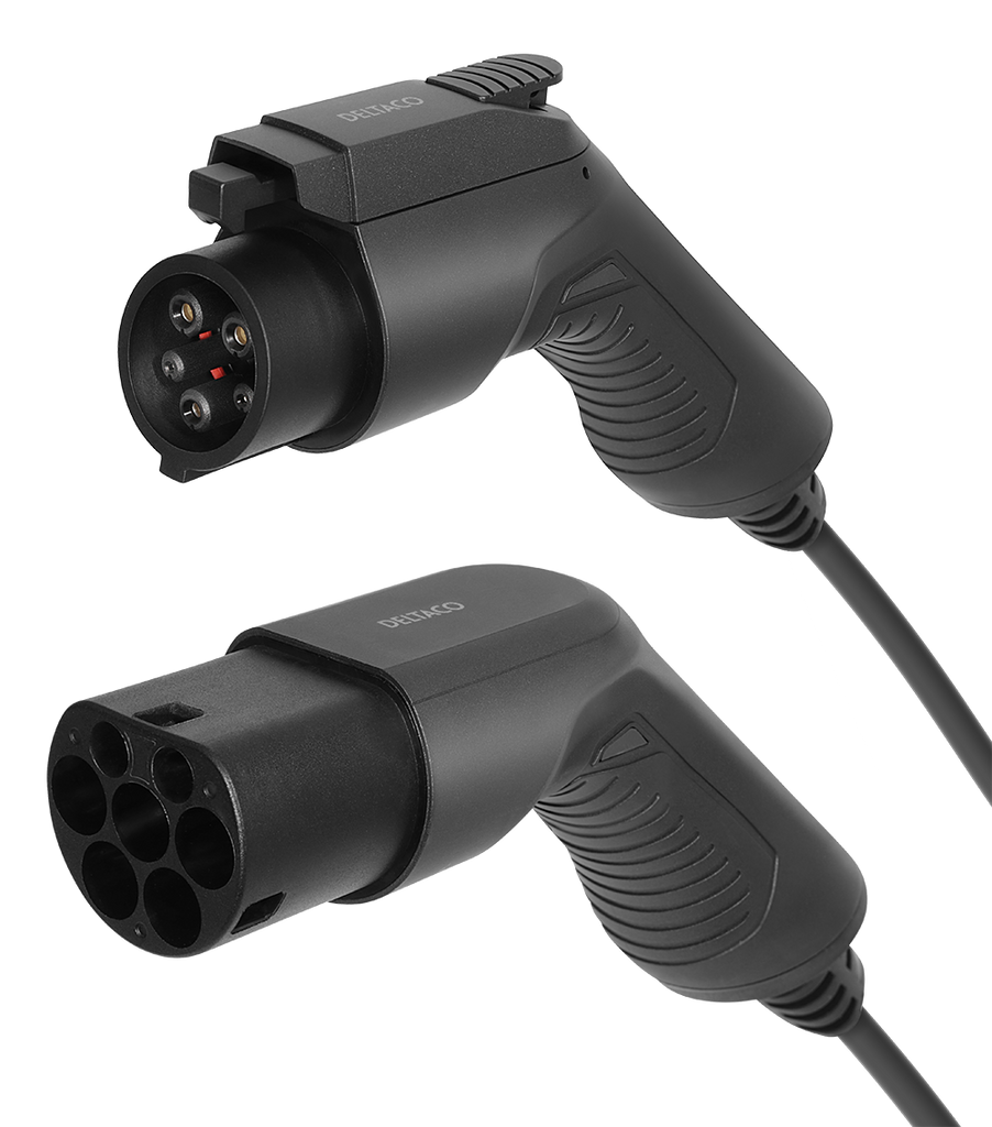 DELTACO e-Charge laddkabel, typ 2 till typ 1, 1 fas, 16A, 3,6KW, 7m, svart