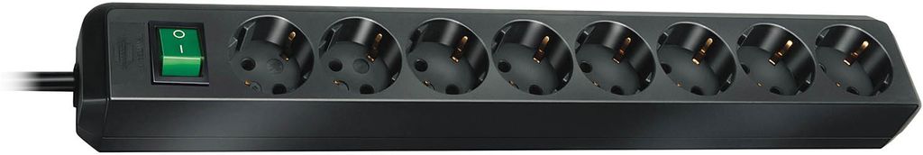 Brennenstuhl Eco-Line grenuttag, 8xCEE 7/4 uttag, 1xCEE 7/7 anslutning, central brytare, 3m kabel, petskyddad, svart