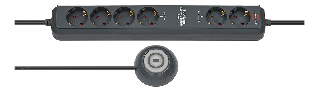 Brennenstuhl Eco-Line med hand/fotbrytare, med 6 x CEE 7/4 uttag, 1xCEE 7/7 anslutning, 1,5m kabel, antracit