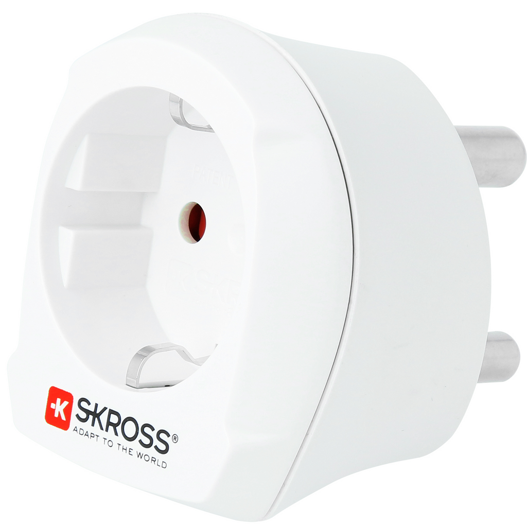 Den sydafrikanska uttagsstandarden används i 15 länder världen över. Denna SKROSS-adapter ger en säker och lätt anslutning för enheter med Schuko- eller Euro-plugg, även enheter som drar mycket effekt som laptop och hårtork.