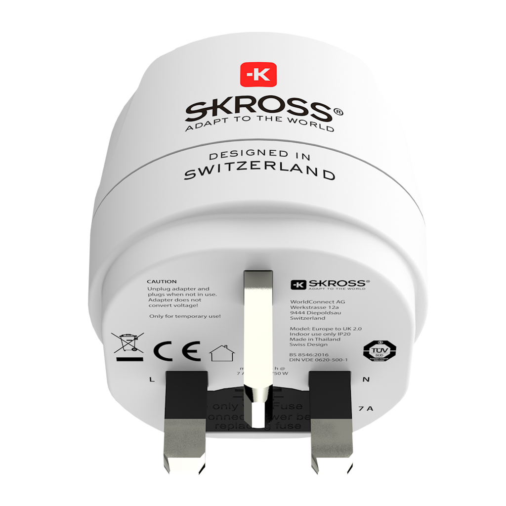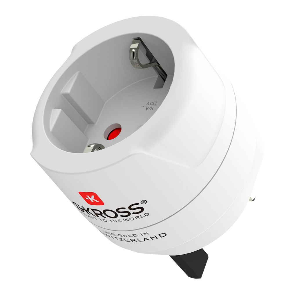 Adaptern är idealisk när du reser till länder som använder UK plug-standarden. Du kan använda den för att ansluta alla dina 2-poliga och 3-poliga enheter med Schuco eller Euro-plugg på dina resor.