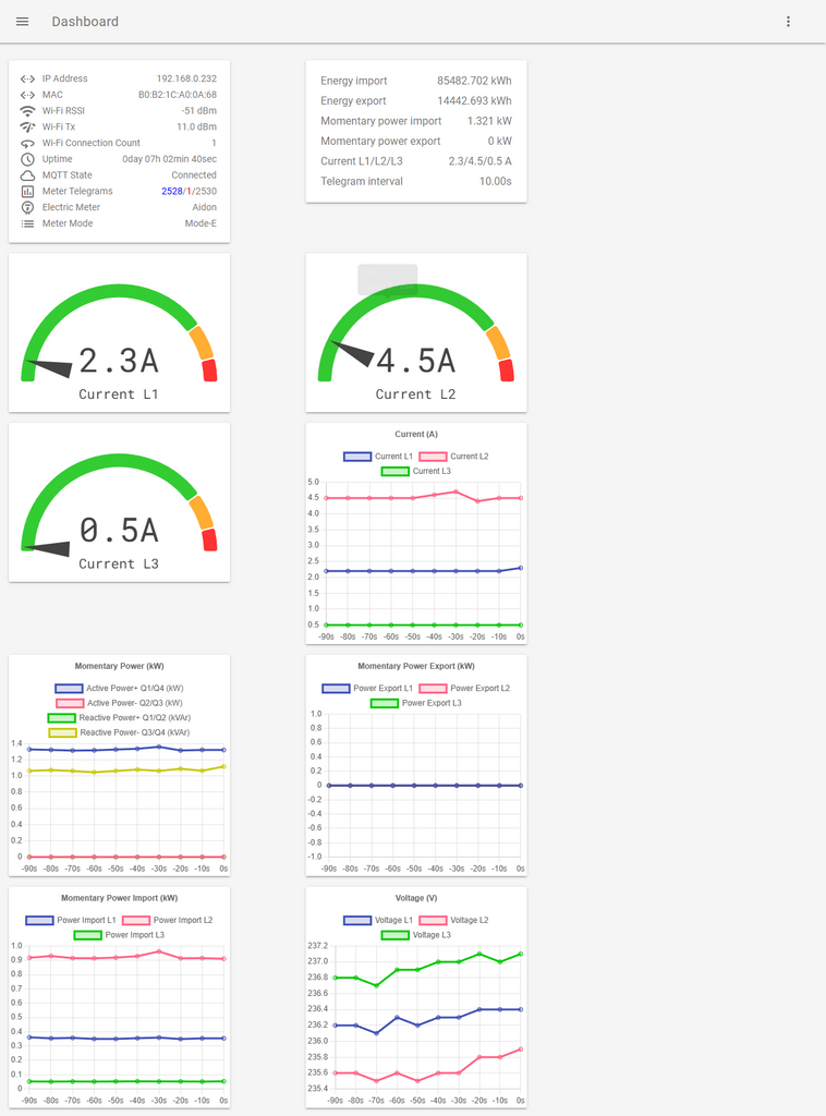 Nu finns P1IB även med ethernet (och wifi!) för er som har nätverk framdraget till elmätaren! Koppla enkelt in enheten på RJ12-porten på din elmätare och börja mät el i realtid på bara några minuter. Busenkel installation i Home Assistant via MQTT Auto Discovery eller i Homey via appen som finns tillgänglig. Det finns även en inbyggd dashboard i P1IB via webgränssnitt.