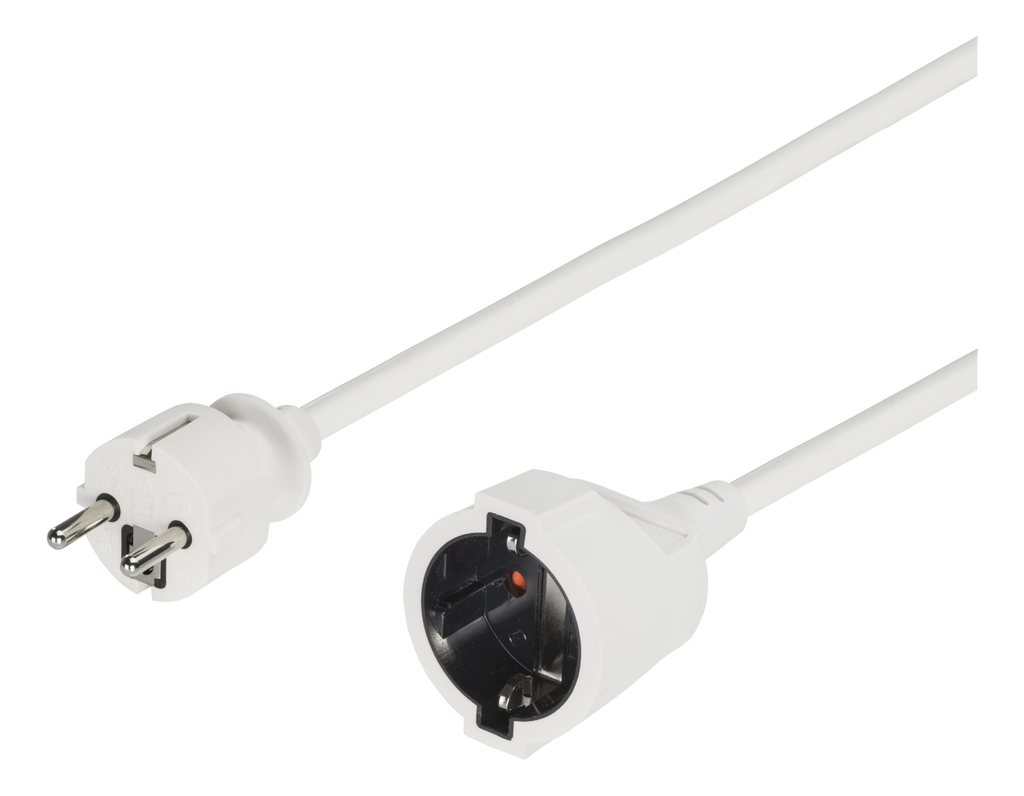 DELTACO jordad förlängningskabel, 1xCEE 7/7, 1xCEE 7/4(Schuko), greppvänlig, 3m, vit