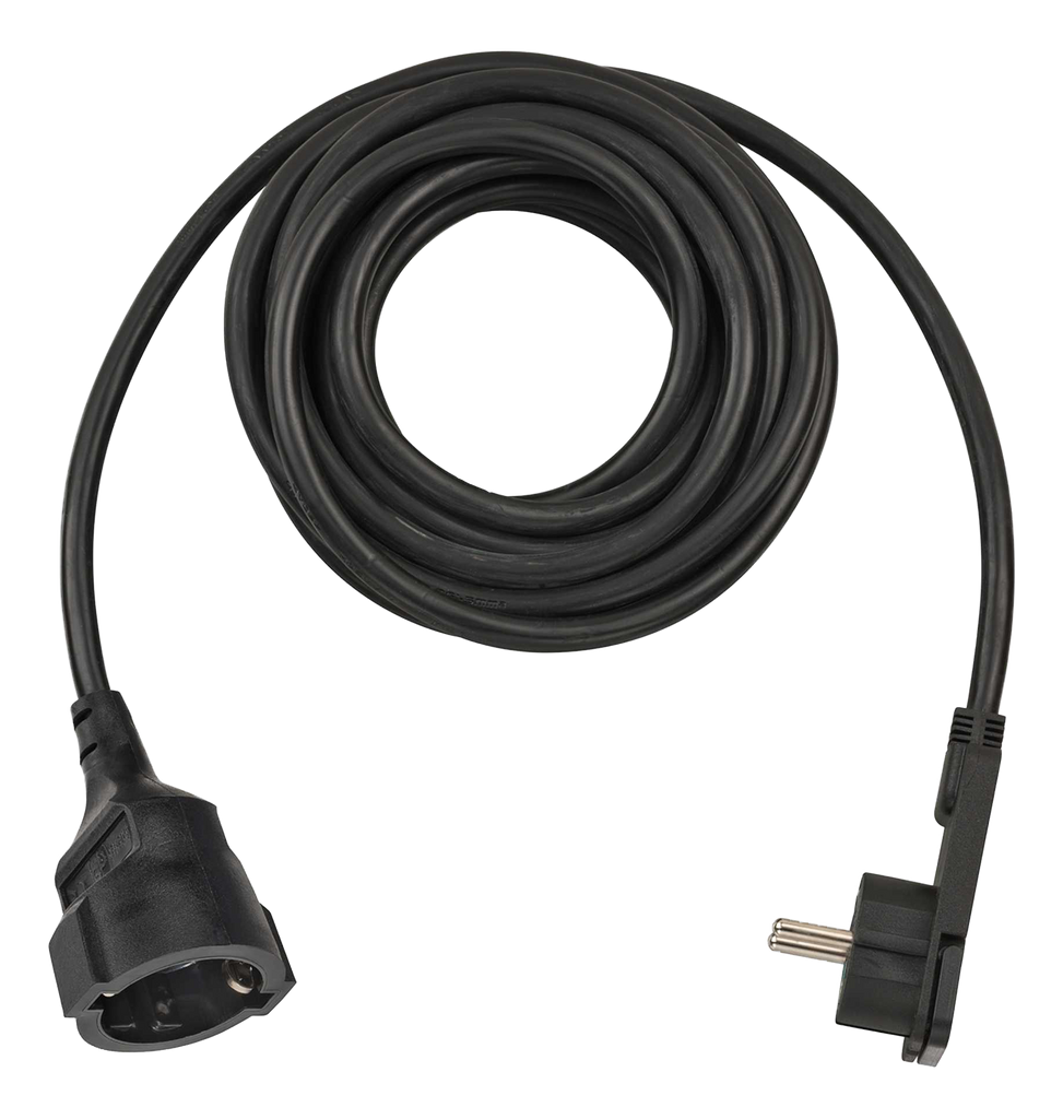 Brennenstuhl förlängningskabel med vinklad platt CEE 7/7 kontakt, 5m, H05VV-F 3G1,5, IP20, svart