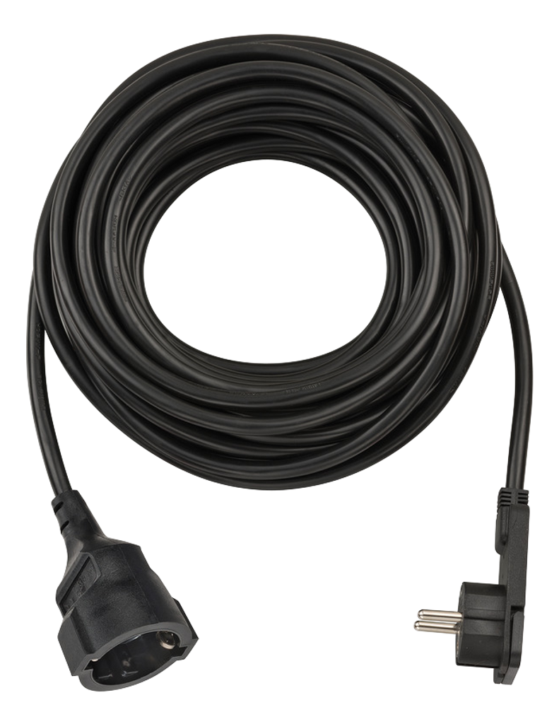 Kort förlängningskabel med vinklad platt plugg 10m H05VV-F3G1.5 svart