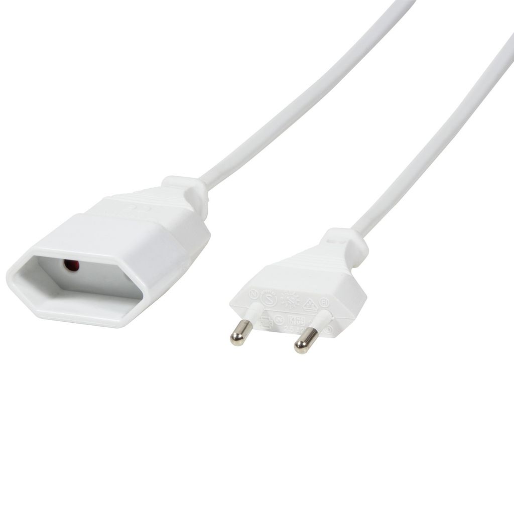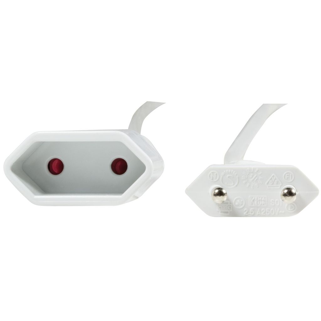 Förlängningskabel för kablar med Euro-kontakter CEE 7/16, 3m, Vit