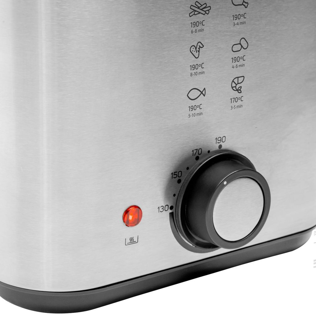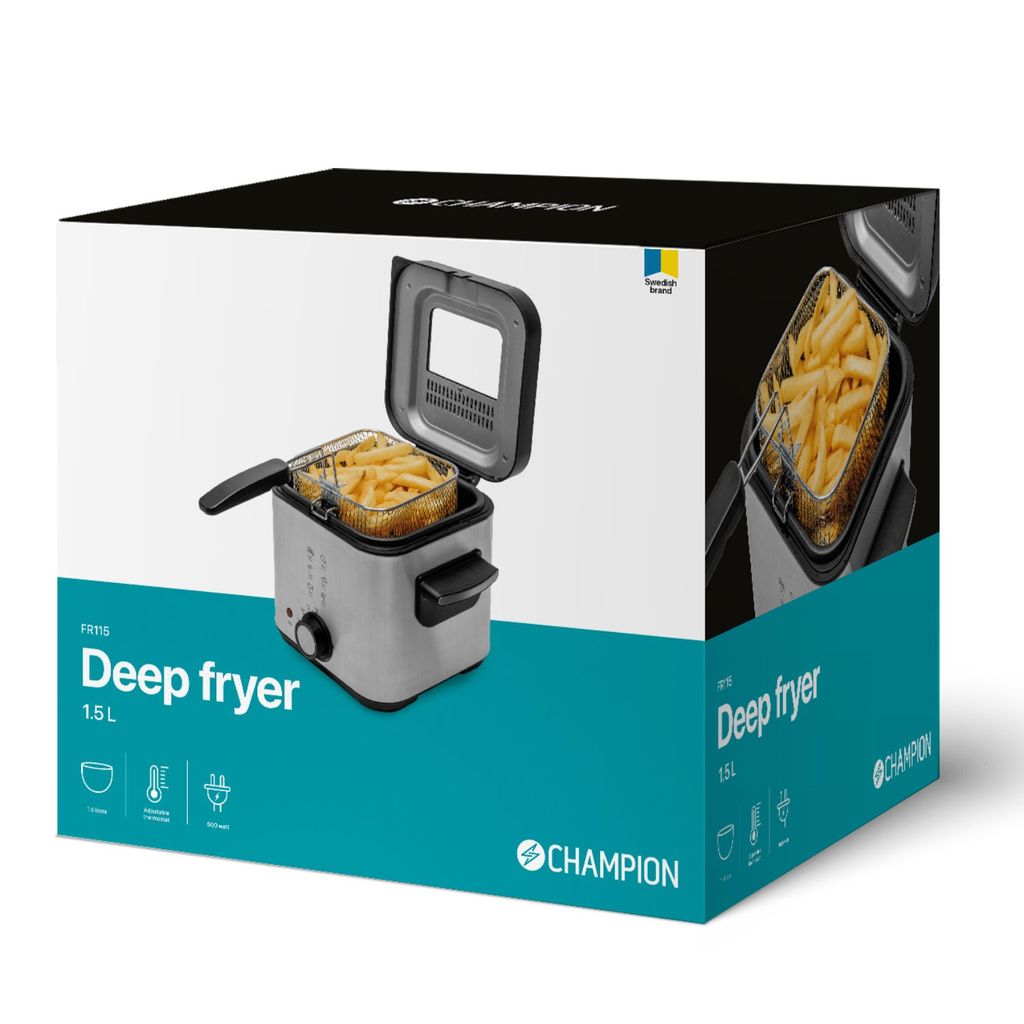Champions Fritös har en volym på 1,5 L och en kompakt design, perfekt anpassad det mindre hushållet, eller till dig som friterar lite och sällan. Tillaga enkelt pommes, kycklingvingar, lökringar – bara fantasin sätter gränser. Fritösen är tillverkad i rostfritt stål och med den tydliga termostaten ställer du enkelt in önskad värme, från 130-190°C.