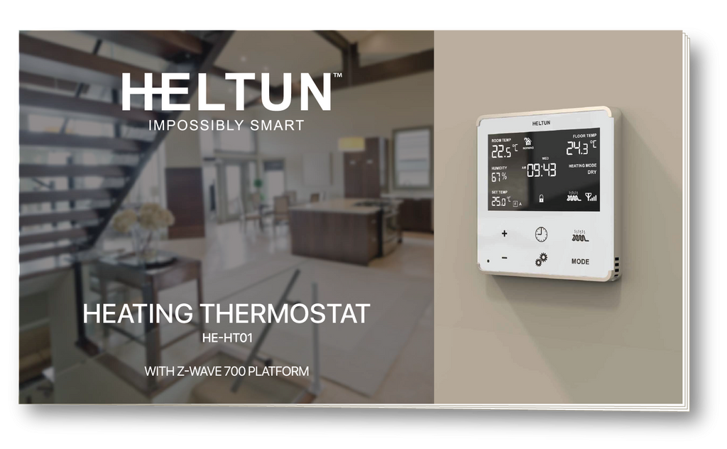 Smart kvalitetstermostat med Z-Wave 700.- Heltuns smarta termostat är anpassad för elektrisk golvvärme.- Termostaten har inbyggt Z-Wave 700-chip som kan anslutas till valfritt hemautomatiseringssystem. - Sätt temperaturen antingen via de fysiska kontrollerna eller direkt via din styrenhet.