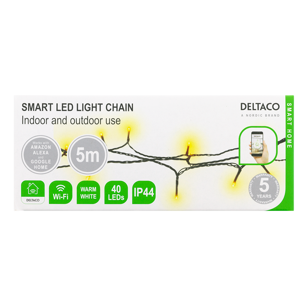 FYND Deltaco WiFi 5 m vitfärgad ljusslinga - 40 led (adapter, IP44, WW)