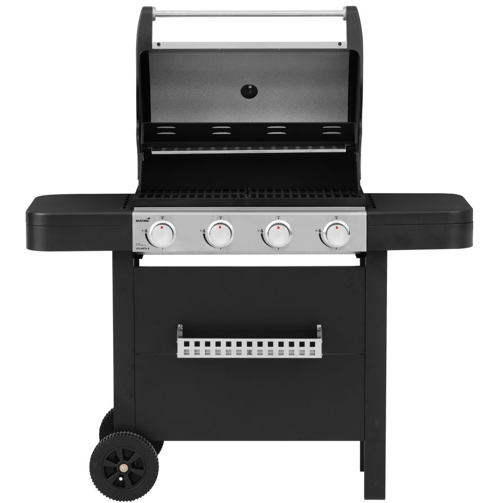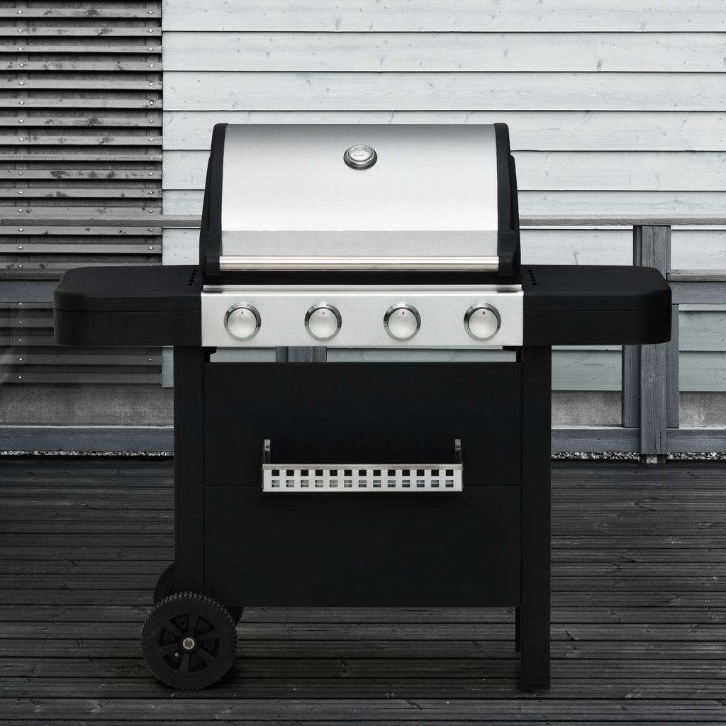 Gasolgrill utrustad med 4 brännare i rostfritt stål med total effekt 12,0 kW.
