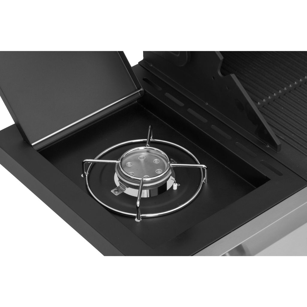 Grillens fyra huvudbrännare i rostfritt stål har en effekt på 3,2 kW vardera, sidobrännarens effekt är även den på 3,2 kW. Total effekt 16,0 kW.